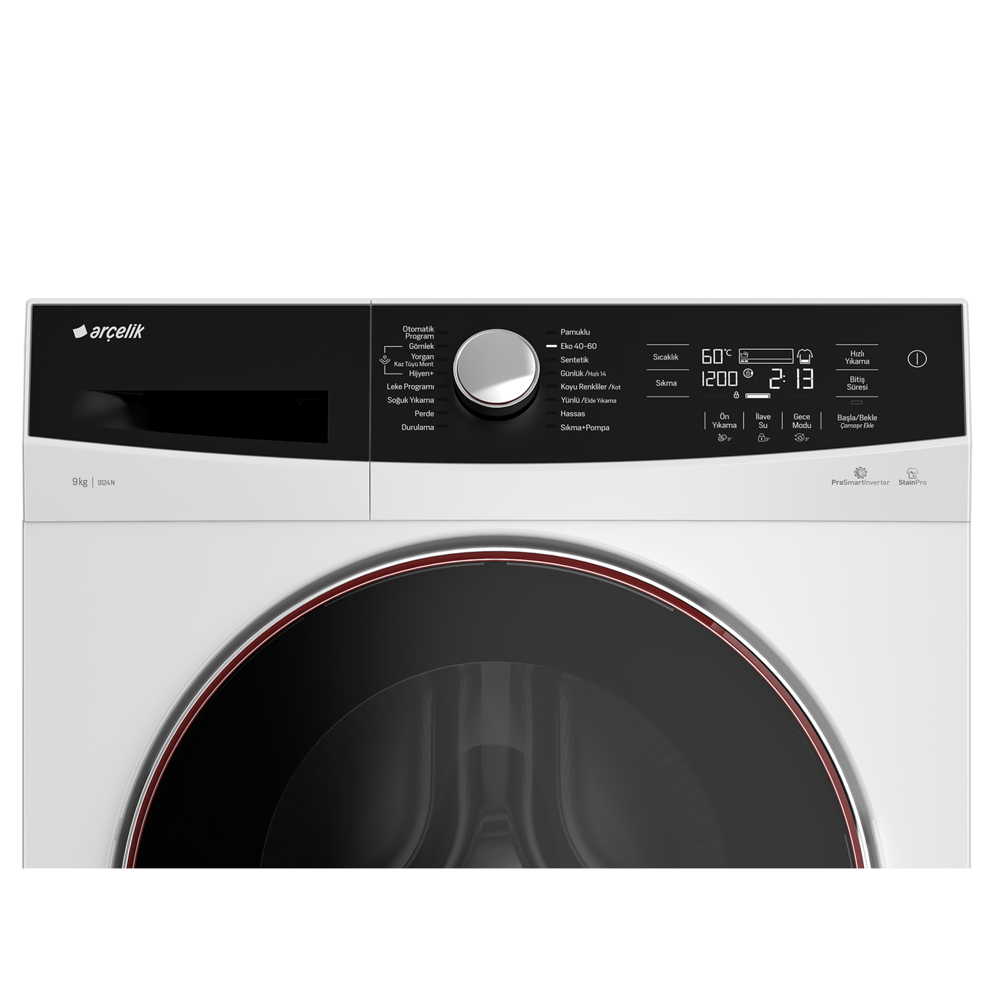 Arçelik 9124 N Çamaşır Makinesi, 9 kg kapasitesi ve 1200 rpm maksimum sıkma devriyle büyük aileler için tasarlanmış, performans odaklı bir modeldir. ProSmart Inverter motor teknolojisi sayesinde enerji verimliliği ve sessiz çalışma bir arada sunulur. 16 farklı program seçeneğiyle farklı kumaş türlerine uygun yıkama imkânı sağlar. Beyaz gövdesi ve sade kontrol paneliyle kullanım kolaylığı sağlar.