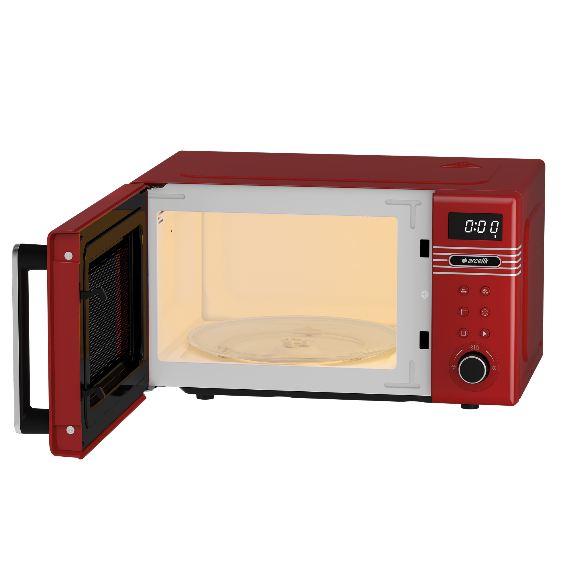 21 L hacim, kırmızı vintage tasarım ve 800 W gücüyle mutfağınıza hem şıklık hem pratiklik katar.